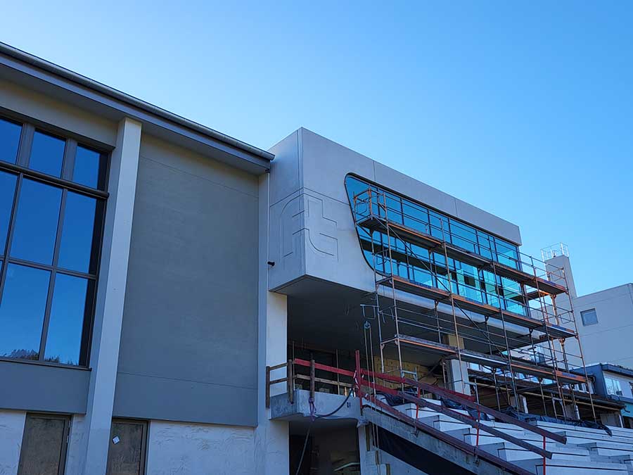 Vorhangfassade in Weißbeton,